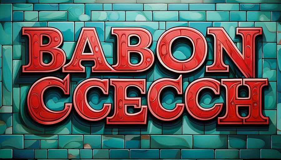 Signage concept for a restaurant branding project. The restaurant was called Bacon Czech. The AI rendered it as BABON CECCH in 3D slab serif on teal tile. The letter doubling is unexplained. The letters are confident. They are wrong but confident.